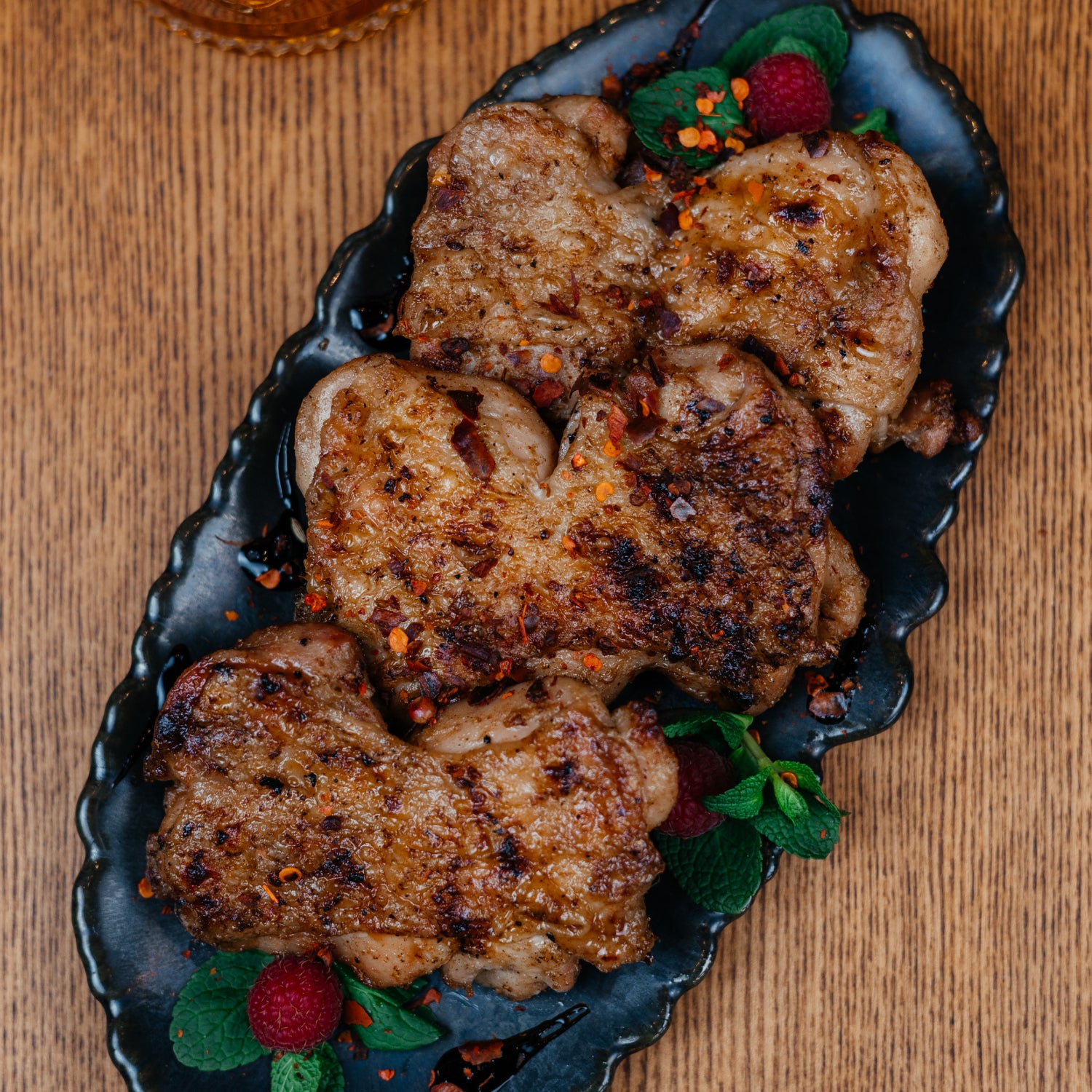 Шашлик із філе курячого стегна – соковитий, ніжний і ароматний. Ідеальне поєднання спецій і правильне приготування роблять м’ясо м’яким усередині та з апетитною скоринкою зовні.