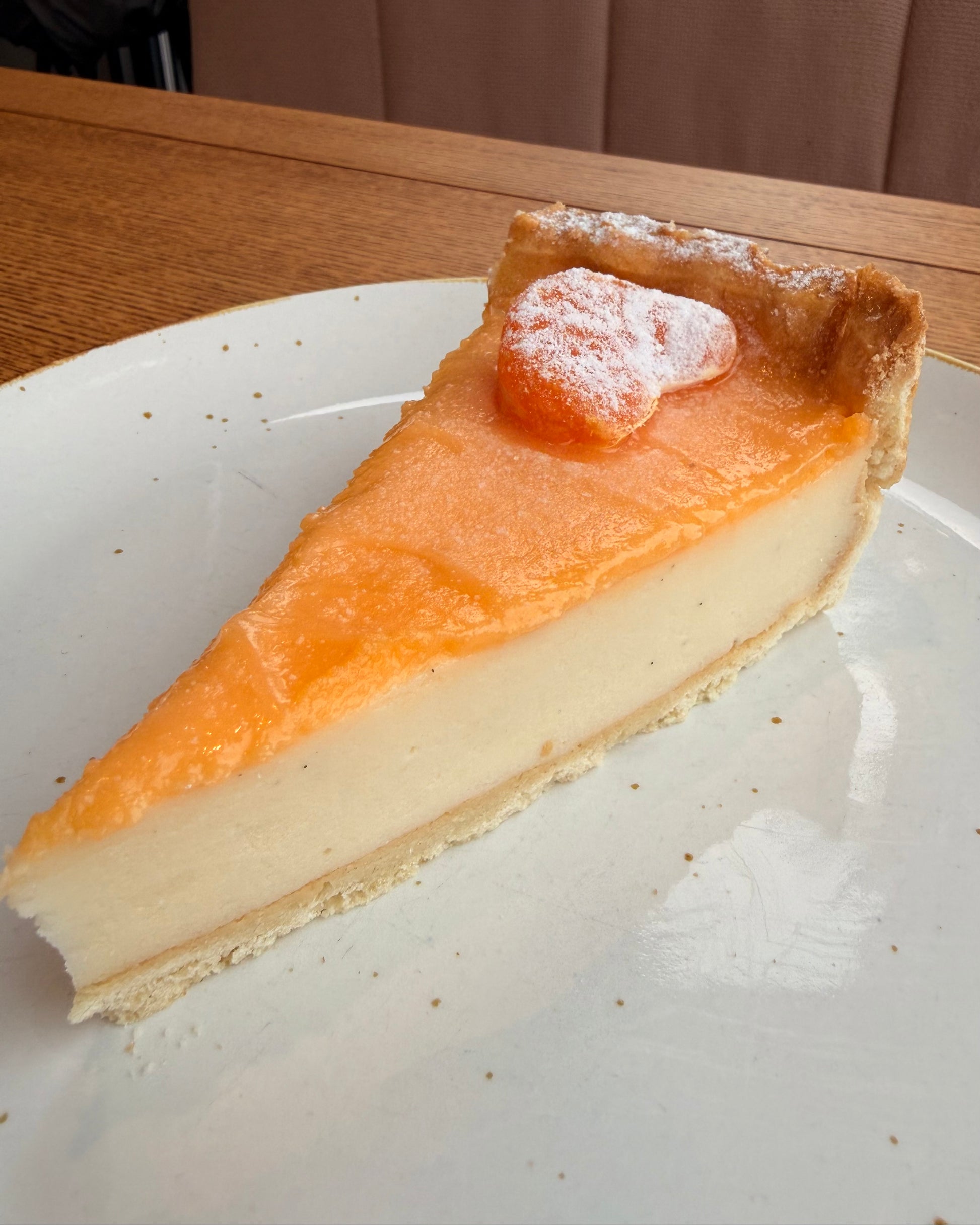 Дуже ніжний десерт із хрусткою пісочною основою та кремовою начинкою з апельсина й лимона. Свіжий, яскравий, із легкою кислинкою — він освіжає після ситної страви й дарує справжній вибух сонячного настрою навіть у похмурий день, за що встиг стати фаворитом серед гостей.