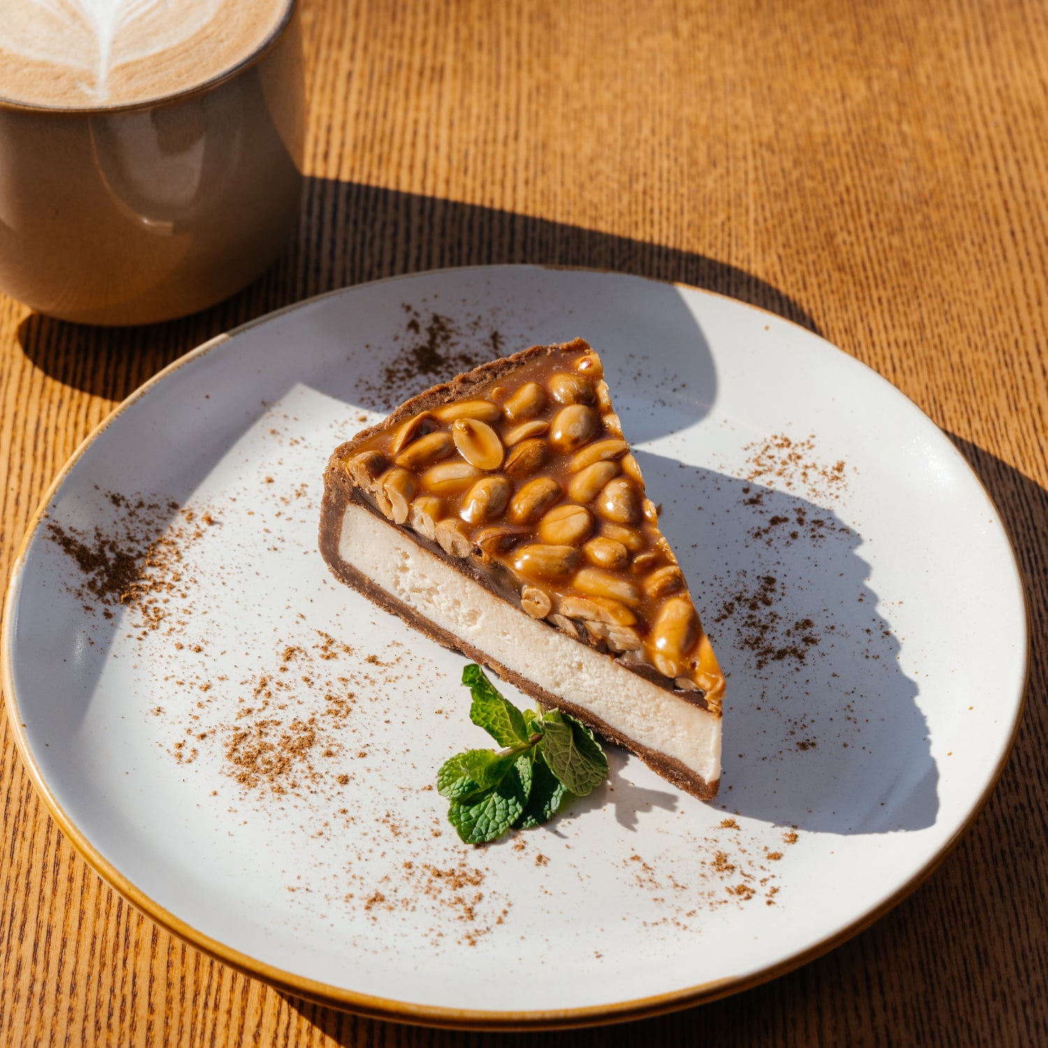 Солодкий поцілунок відразу двох світів: ніжний, кремовий чізкейк із насиченим смаком карамелі та шоколаду з горішками. Він дарує поєднання всіх улюблених смаків в одному десерті, а кожен шматочок — це маленька шоколадна насолода, що тане в роті і залишає неймовірне задоволення.