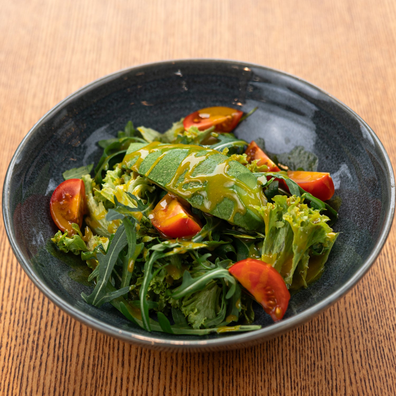 Зелений салат iз авокадо та медово-гiрчичною заправкою
